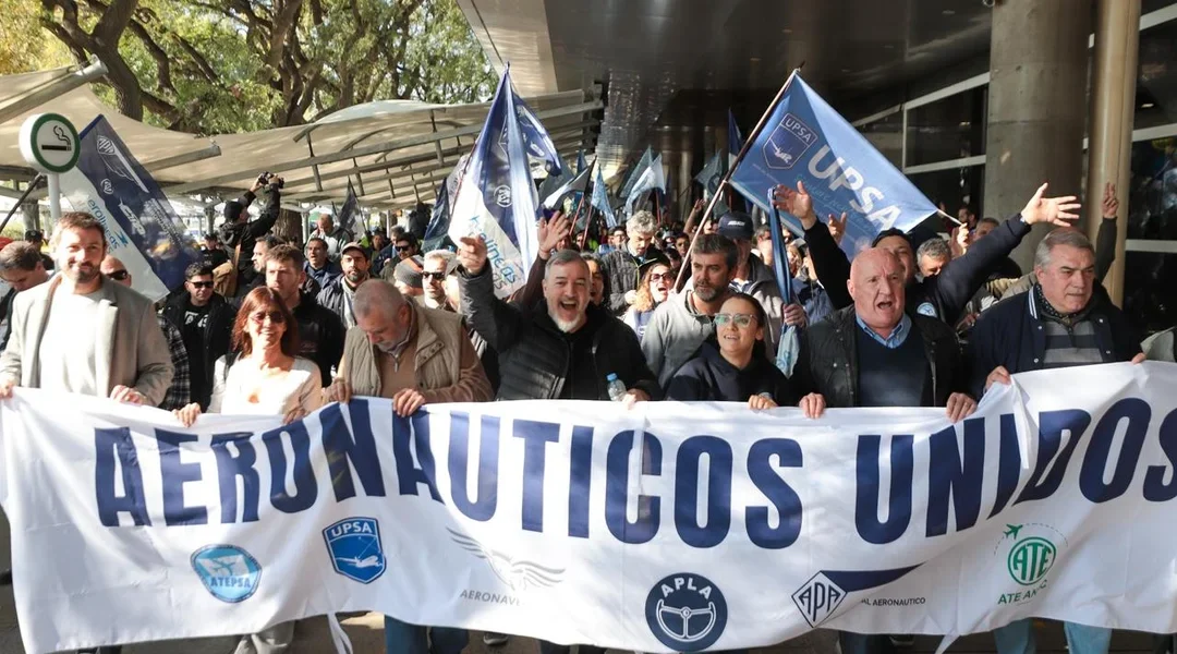 La protesta fue impulsada de forma conjunta por la Asociación del Personal Aeronáutico (APA), la Unión del Personal Superior y Profesional de Empresas Aerocomerciales (UPSA), la Asociación Argentina de Aeronavegantes (AAA), la Asociación de Técnicos y Empleados de Protección y Seguridad a la Aeronavegación (Atepsa) y ATE ANAC, el gremio que nuclea a los trabajadores de la Administración Nacional de Aviación Civil.