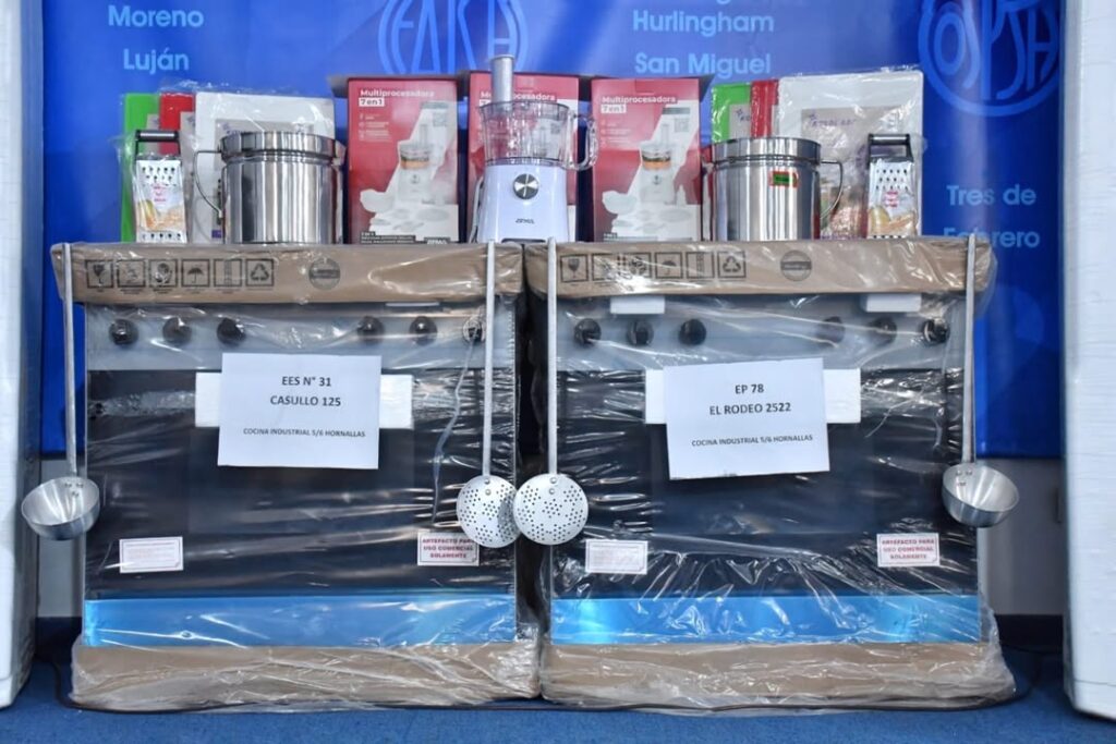 Las escuelas recibieron heladeras con freezer, cocinas industriales, termotanques, electrodomésticos, utensilios y productos de bazar, a través del Servicio Alimentario Escolar (SAE).