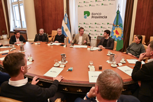 Durante el encuentro, realizado en la Casa Central del Banco Provincia, también participaron la presidenta de Provincia Fideicomisos, Nadia Giardina; el presidente del holding Provincia Servicios Financieros, Ariel Lieutier; y el presidente de Fuerza Solidaria, Juan Cáccamo, junto a los intendentes de los municipios firmantes.