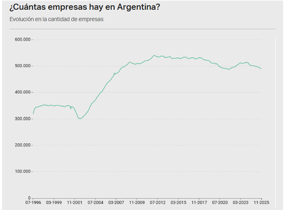 El periodo de mayor desarrollo fue durante los años 2004 al 2015, se crearon más de 230 mil empresas. Luego viene un retroceso del 2015 al 2019 (Macri) con 25.000 empresas menos. La pandemia hizo cerrar a unas 22.000 empresas, pero hubo una recuperación equivalente al final del mandato de Alberto Fernández.