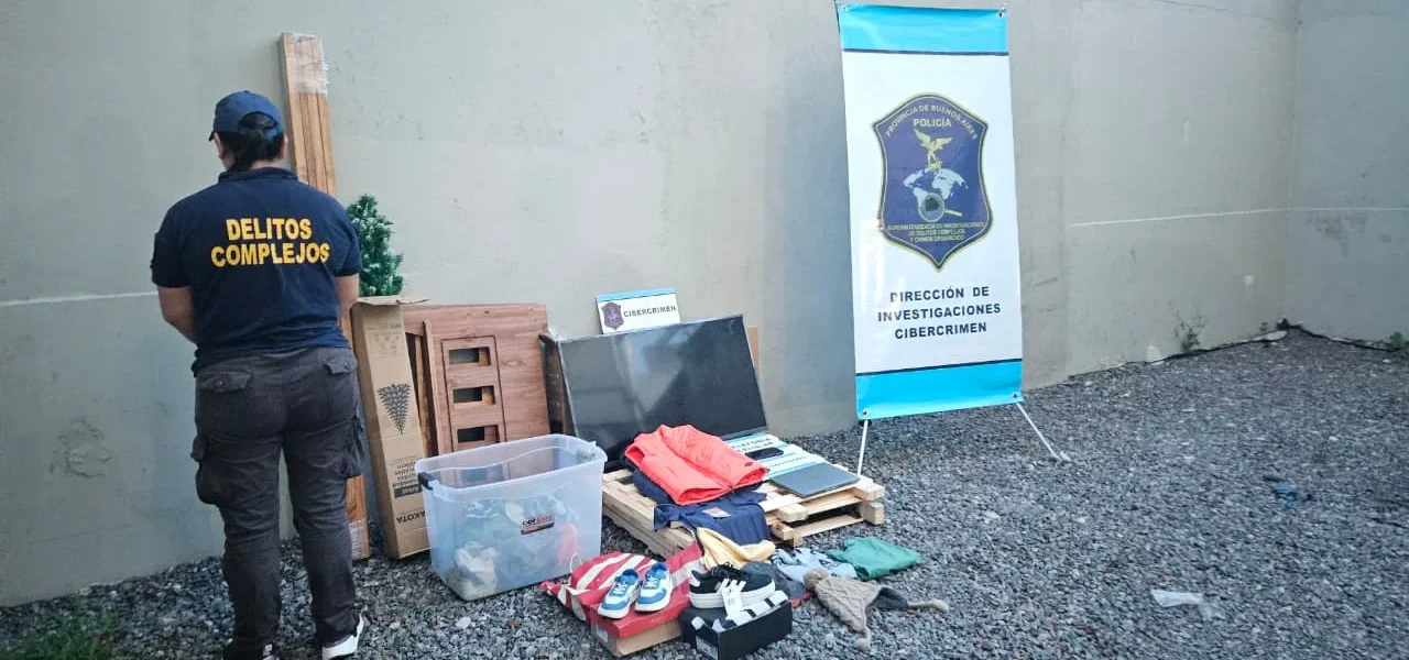 Durante el procedimiento se secuestraron distintos elementos de interés para la causa, entre ellos dispositivos electrónicos, un televisor y prendas de vestir que podrían estar vinculados a las compras investigadas.