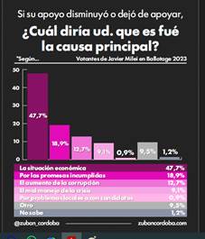 Cuando la inflación golpea, cuando el poder adquisitivo cae y cuando la vida cotidiana se vuelve más difícil, el relato pierde eficacia. Y los datos son contundentes: el principal motivo de rechazo al Gobierno es, justamente, la mala gestión económica. No hay narrativa que resista indefinidamente al deterioro material.